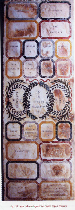 S. GIANUARIO M. - Alcuni frammenti di ampolla di vetro - Due frammenti di femore, lunghi 30 e 20 cm, metà distale con i condili articolari intatti - Un omero sinistro in perfette condizioni di conservazione - Epifisi prossimale della tibia sinistra ampiamente erosa - Testa di omero destro - Due scapole, destra e sinistra, in ottimo stato di conservazione - Due creste iliache, di cui una in buono stato di conservazione e la seconda più frammentaria - Due teste di femore - Due porzioni dell'osso dell'anca, ischio - Un frammento della estremità prossimale del femore privo della testa - Due frammenti prossimali di radio, destro e sinistro, con preservati i capi articolari - Due calcagni - Frammento di osso temporale - Un frammento di osso iliaco, con evidente una porzione dell'acetabolo - Sei vertebre dorsali, quasi intatte - Tre vertebre cervicali intatte - Un frammento di atlante - Una vertebra lombare in buone condizioni e frammenti di altre due vertebre lombari - Quattro coste integre - Sette coste quasi integre - Numerosi frammenti di altre coste - Estremità distale di clavicola sinistra - Frammento del terzo prossimale di femore destro, privo di epifisi - Frammento del terzo prossimale di tibia destra, priva di epifisi - Frammenti do osso parietale - Frammenti di osso mascellare sinistro; sono evidenti gli alveoli dentali pervi da 21 a 28, indicanti la perdita post-mortem di tali elementi dentali - Manubrio sternale - Un frammento di radio - Sette metatarsi e metacarpi - Una falange del piede - Una falange della mano - Un frammento dell'estremità prossimale di radio - Un frammento dell'estremità distale di radio - Due rami mandibolari, destro e sinistro, con preservati il condilo ed il processo coronoideo - Una rotula - Un astragalo - Osso sacro in buone condizioni di conservazione, privo della superficie auricolare sinistra - Un frammento di osso zigomatico - Numerosi frammenti ossei non attribuibili Dal sommario esame dei reperti ossei si può dedurre che si trattava di individui adulti, verosimilmente di sesso maschile, e di questi, in particolare, le ossa attribuite a S. Gianuario M. presentano dimensioni, robustezza e zone di inserzione muscolare tali da ipotizzare una costituzione robusta in individuo di altezza sopra la media.